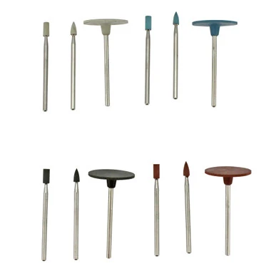 Polishing points have silicone carbide, silicone dioxide, and aluminum oxide abrasive compound in rubber binder for a smooth finish on precious metals, stone, and ceramics. Wheels are 23mm x 1mm, Flames and Cylinders are 3mm x 7mm. Includes one of each shape per grit.