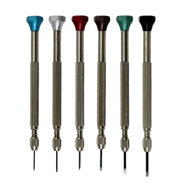 A very popular series of screwdrivers that features color-coded hex heads and reversible blades. Blades are tempered and finely ground to exact specifications. Replacement blades are available. Made in France.