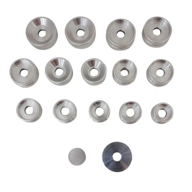 These are the straight walled aluminum dies that come standard with the Professional Watchmakers Watch Crystal and Watch Case Press (59.700). The dies have 10 mm mounting holes and fit the BB Brand presses as well as other presses.