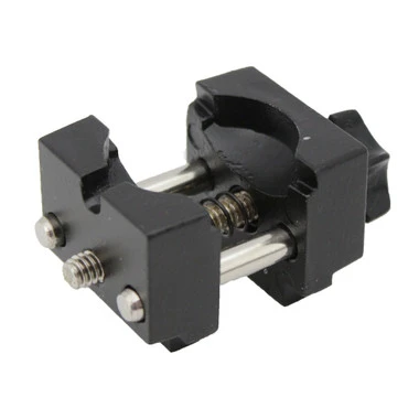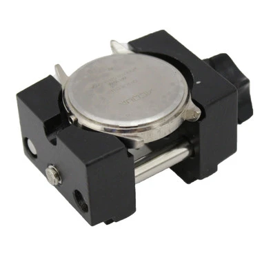 Made in the more original style of case holders, this tool does not have pins to the hold the watch in place. Rounded aluminum edges clamp the watch in place. Capacity is 18mm to 40mm with a cutout for the stem and crown at 6mm wide.Â