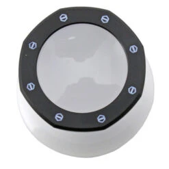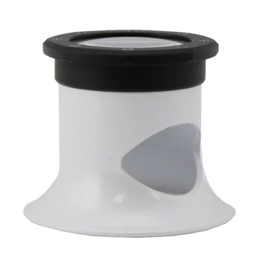 Aluminum construction pearl white loupe with a black bezel has a quality 5X optical glass lens that gives a crisp, clear view from edge to edge. Features a side opening, convenient to see other items below the viewing field. Loupes measure 38mm x 32mm high.