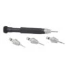 These high torque screwdrivers use the 30081 series of Bergeon screwdrivers and add on the high torque grip barrel. This knurled grip is full adjustable making removing even the tightest screws easy and allows for easy installation of screws without straining your hands to get them tight. These Swiss made watchmakers and jewelers straight blade screwdrivers include Bergeon’s new-generation, stainless steel screwdriver technology. Bergeon screwdrivers are built to high specifications and top standards and all blades are tempered and finely ground to exact specifications. These screwdrivers feature a knurled grip shaft and swivel head so that when you hold the top with one hand, you are able to easily twist the screw out with the other hand.Â