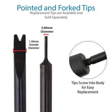 - .80mm pointed end and 3.0mm forked end
