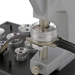 This crystal press was made for fitting unbreakable tension ring crystals into your watch case. The dies are reversible and made of aluminum with tapered surfaces. This tool is NOT recommended for use on mineral glass crystals.