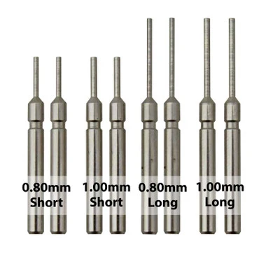 - Includes 5 tips; 1 each of 0.80mm and 1.00mm in long and short length and flat end pin