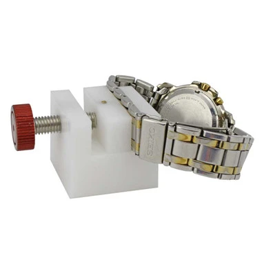 Tired of trying to hold a watch band and the tools you need to adjust the watch band? Then this is the tool you have always been looking for. This is a vise that will hold the watch band securely, allowing you to have both hands free to make the adjustment. This will certainly make link removing and other watch band repairs ten times easier.
