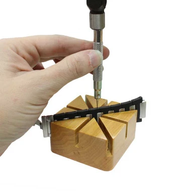 This heavy-duty steel pin punch set is made for removing watch band and bracelet pins. This heavy-duty set is made with large handles with knurled grips for easy handling. Pin punch tip sizes measure 0.80 and 1.00mm. One set of replacement tips is included.