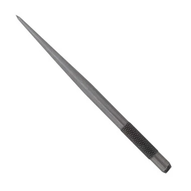 Used to make a small dent, by tapping with a hammer, as a starting point for drilling. Made of steel with a knurled handle for a firm grip. Slim 6mm design; can also be used as a scriber.