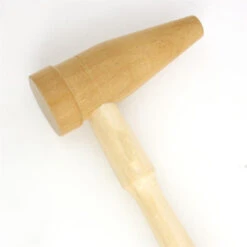 - Lightweight non-marring hardwood hammer with 2 round flat wooden faces