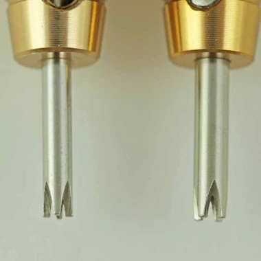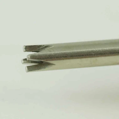 Heavy duty screwdriver for opening Audemars Piquet® watches. Special type of blade has 4 prongs for fitting Ladies or Gents watches. Aluminum body has an ergonomic design with knurled handle for a better grip. The cap comes off to offer storage of spare blades inside the screwdriver body.