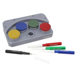 This four cup Swiss made oiler stand is made of heavy duty aluminum and includes 4 dip oilers. It features 4 separate oil containers made of synthetic ruby that will not absorb or contaminate other oils or oilers. Secure covers keep oils safe from dust and debris while the foam (located in the center of the oilers) absorbs extra un-used oil. Base has rubber pad which grips workbench surface to prevent slipping. This is a watch oiler stand that will last a watchmaker a lifetime as it preserves the life span of your oilers and protects them.