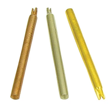 These Kif Trior setters come in a set of three and are designed to make it easy to place the shock springs that are used to hold jewels in settings in watches. Each different colored Kif Trior setter indicates a different sized opening for setting the shock springs, this set comes with setter sizes: 160, 190, and 210.