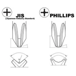JIS blades (Japanese Industry Standard) are very similar to Phillips blades and commonly mistaken for being Phillips. JIS screwheads are sometimes marked with a raised dot or an ‘x’ to one side of the cross slot and JIS screwdriver blades do not have the rounded corners in the center of the cross.