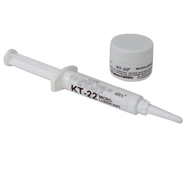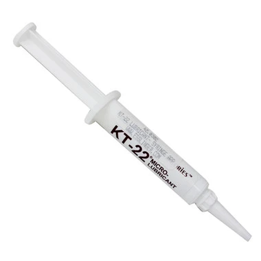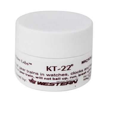 The KT-22 Micro-lubricant is a stem and winding gear lubricant that assures full lubrication, as well as rust protection, that lasts from cleaning to cleaning. It is designed so that it will never break down, creep, or bleed: it always stays exactly where you want it. It will vapor seal the sleeve completely and waterproofs screw-back cases. It will also protect against condensation and will seal plungers. It is a must have for chronographic lubrication. KT-22 is available in both a jar and in a syringe. The syringe permits accurate placement of the micro-lubricant with optimum purity upon application.