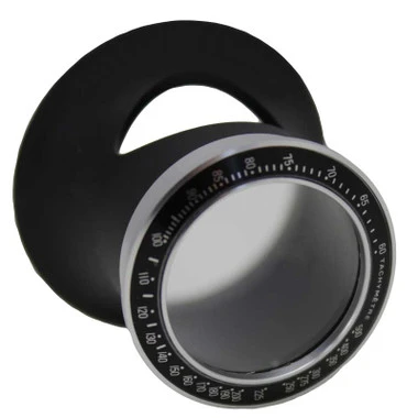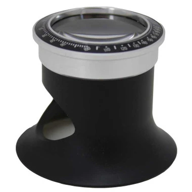 - Black loupe with silver/black bezel