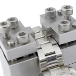 This link remover tool was specially designed to remove Rolex® Oyster and oyster-style watch bracelet links. When you need to size your watch down or add more links for a better fit, this tool will help to open the ‘permanent’ links that are not held in with screws. Also useful if you need to replace worn out pins and links that may have bent and warped from long years of use. Clamps the link to be removed in the tool and with the adjustment of the turning knob the link is pulled apart. This high quality tools is made of stainless steel and comes with an Allen wrench and a pry bar for extra torque.
