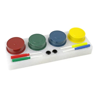 - Set of 4 oilers included: blue (very fine), green (fine), yellow (medium), red (large)