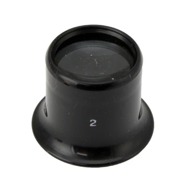The shape of this eye loupe allows it to rest comfortably in the eye socket for hands-free use. It is economical with ground and polished lens set in a lightweight black plastic frame. Can also be used with a headspring for an inexpensive hands-free head mounted magnifier.Â
