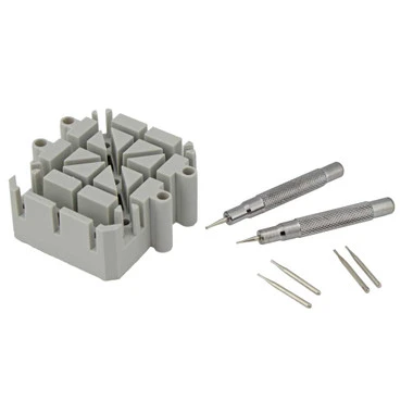 Watch Band Tool Kit is designed to make a watchmakers life simpler. All the tools needed to execute the adjustment of a watch band or replacement of watch links are included in this convenient travel sized set. It comes with a watch band holder that will fit almost any watch band and protect it from getting scratched during the repair work. It also comes with two pin removing punches along with replacement tips for the punches.