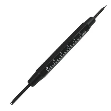 This is a new take on the traditional Spring Bar Tool. With a millimeter scale on the handle, you can now easily measure the parts you need to replace in a watch and do the actual replacing or adjusting of the watch band. Like a traditional Spring Bar Tool, both ends are replaceable and interchangeable, with one pointed and one forked end for versatility.