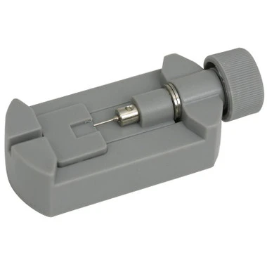 If your watch band needs adjusting, this is your tool! This handy watch band tool will make adjusting the size of your metal watch band a snap. The Link Remover Deluxe’s pin pusher should be lined up on the side of your band with the arrow, it then pushes the pin through the band and out. Once you have adjusted the band as necessary, to reinsert the pin, slide it back into the band through the hole next to the arrow. With these feature this Watch Band link Remover is a must have for every tool box. Fits Bands up to 21.0mm. For larger bands see item # 59.138