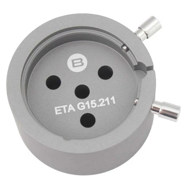 Bergeon movement holder made to specifically hold the ETA G15.211 watch movements. Made of anodized aluminum, hardened and tempered steel bearing screw with polished tip and locking system.