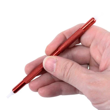 These hand pressers are lightweight aluminum with a comfortable, knurled handle. Â Delrin tips prevent damage to hands and dial.Â