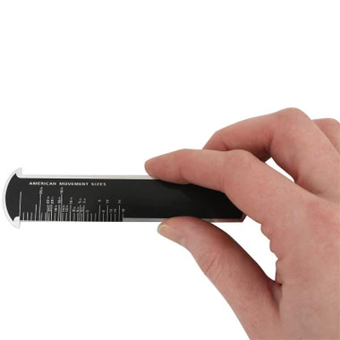 - Measures in millimeters, lignes, and allows you to gauge American watch movement sizes